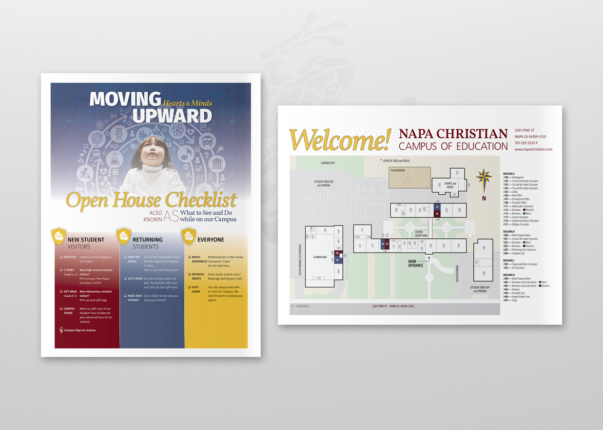 The core theme for the NCCE Open House marketing collateral was the cover graphic used for the documentary film, The Blueprint, The Story of Adventist Education, created by Journey Films and Martin Doblmeier for the Center for Research on K-12 Adventist Education at La Sierra University (CRAE).