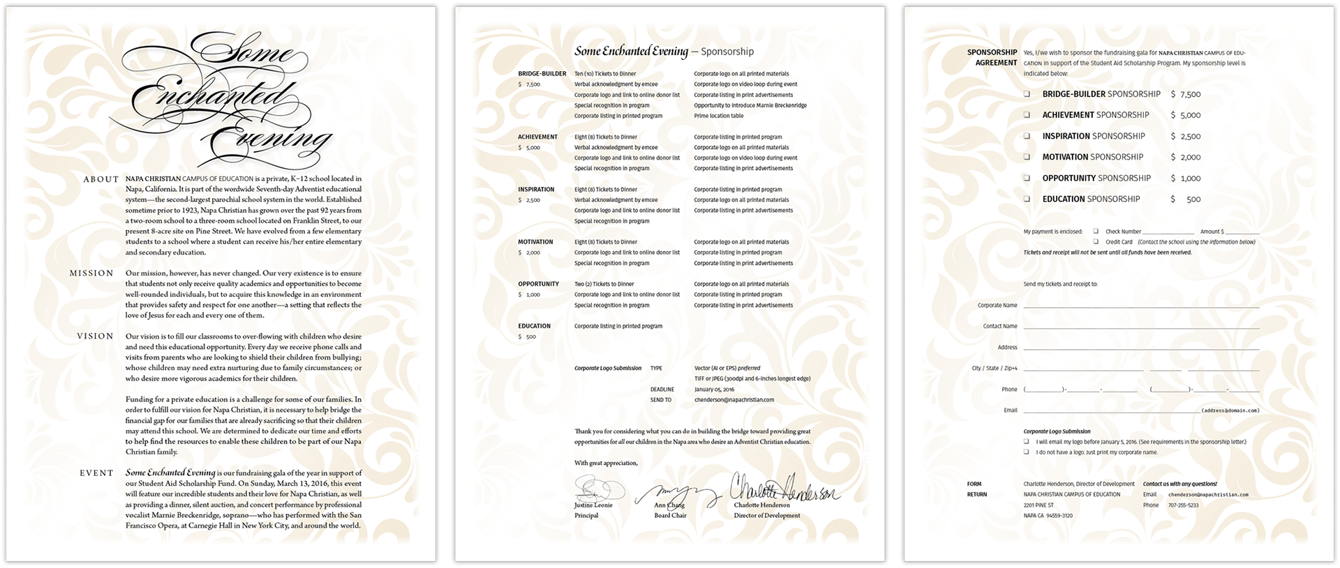 Major Sponsor Letter — 8.5-inch × 11-inch letter, printed in-house by client.